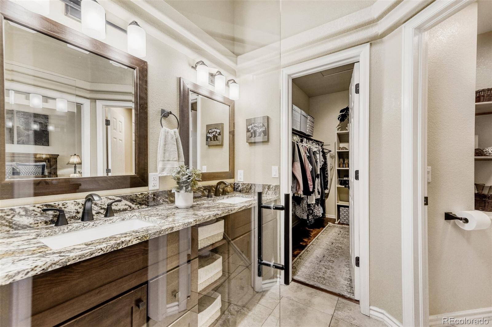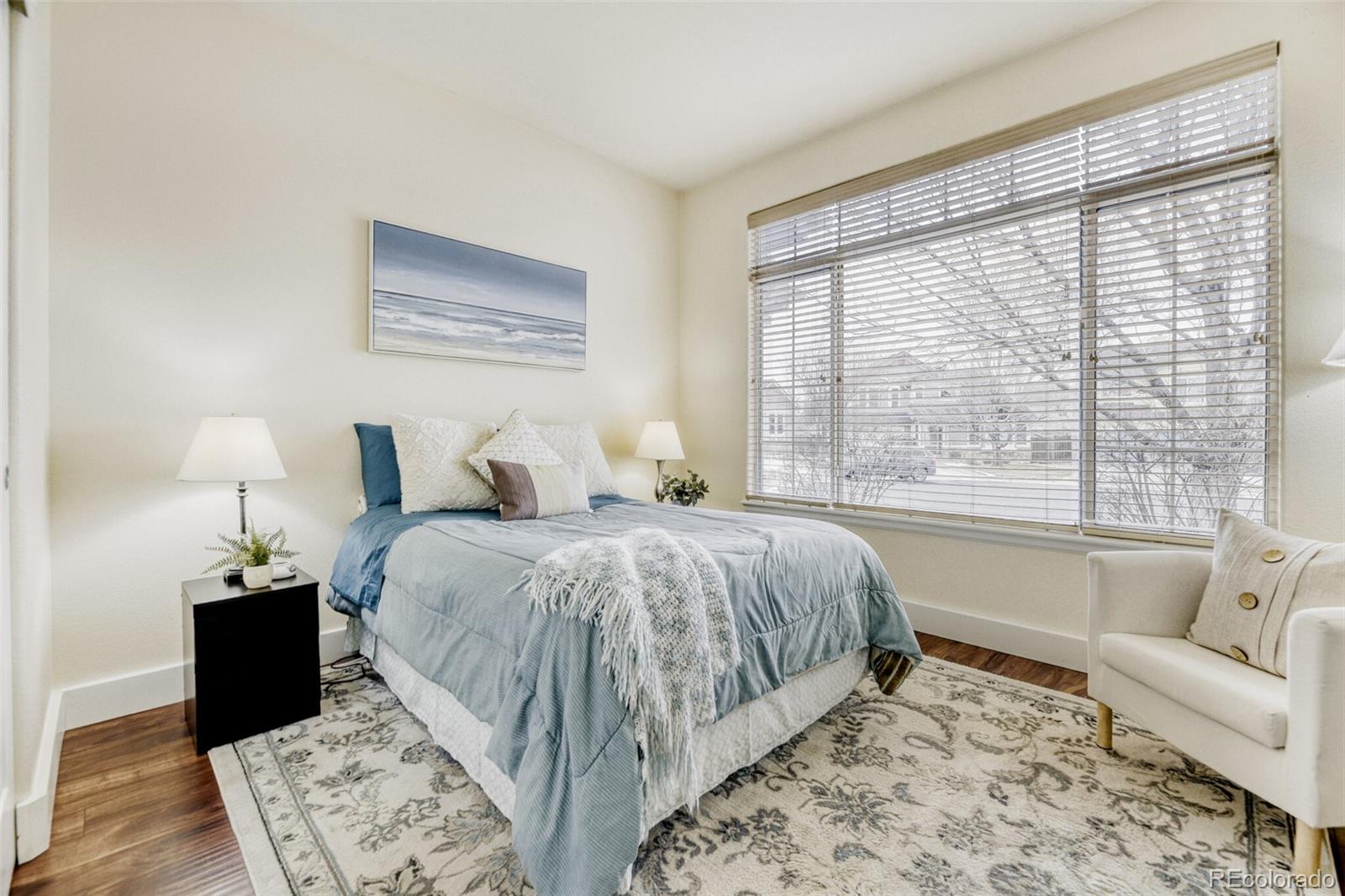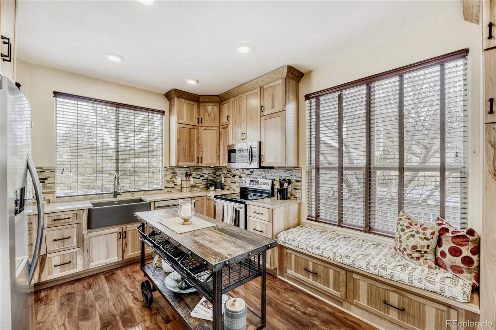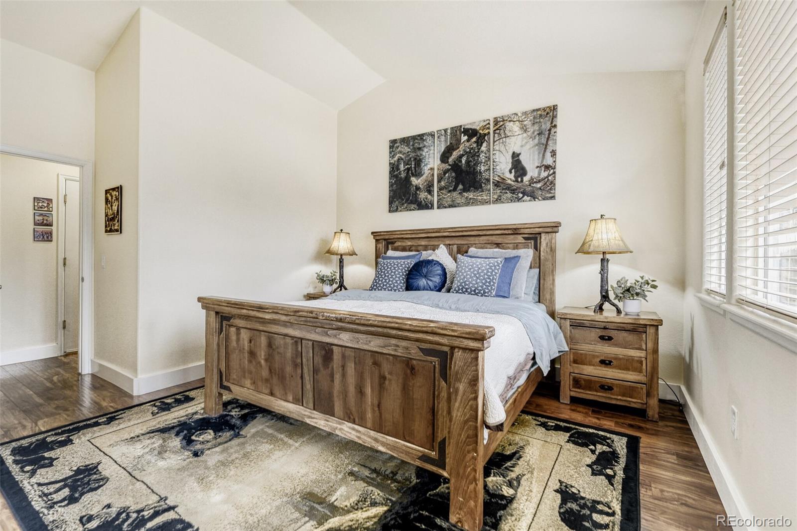 Beautifully updated ranch tucked on an oversized cul-de-sac lot framed by mature trees and lush landscaping. From the moment you step inside, you're greeted by seamless wood flooring, soaring vaulted ceilings, and abundant windows that flood the home with warm, natural light. At the heart of the home is a stunning mountain-modern kitchen, completely remodeled with floor-to-ceiling hickory cabinetry, quartz countertops, a stylish glass tile backsplash, a generous farmhouse sink, and stainless steel appliances. The kitchen has been thoughtfully opened to create an effortless open-concept layout--ideal for everyday living and easy entertaining. A bright dining area flows directly into the inviting great room featuring vaulted ceilings, built-in bookshelves, and a cozy stone fireplace--the perfect place to unwind. Down the hall, you'll find three bedrooms, including a front bedroom currently styled as a private home office with French doors. A spacious guest bedroom sits beside an updated secondary bath with a custom vanity and fresh tile shower surround. The peaceful primary suite offers vaulted ceilings, an ample walk-in closet, and a beautifully updated en-suite bath with a custom dual-sink vanity and a gorgeous oversized glass walk-in shower. Step outside to an equally impressive backyard designed for Colorado living--highlighted by a huge custom patio with a built-in stone firepit, plus an extended walkway that wraps to a second side patio with convenient access to the garage via an exterior service door. With a generous yard for kids and pets and professional landscaping throughout, this outdoor space is ready for summer nights and weekend gatherings.An unfinished basement provides tons of storage today and exciting potential for future expansion--home gym, rec room, additional bedrooms--your choice. Brand New Roof, Newer Furnace, Newer water heater, newer patio and driveway, some windows replaced.
