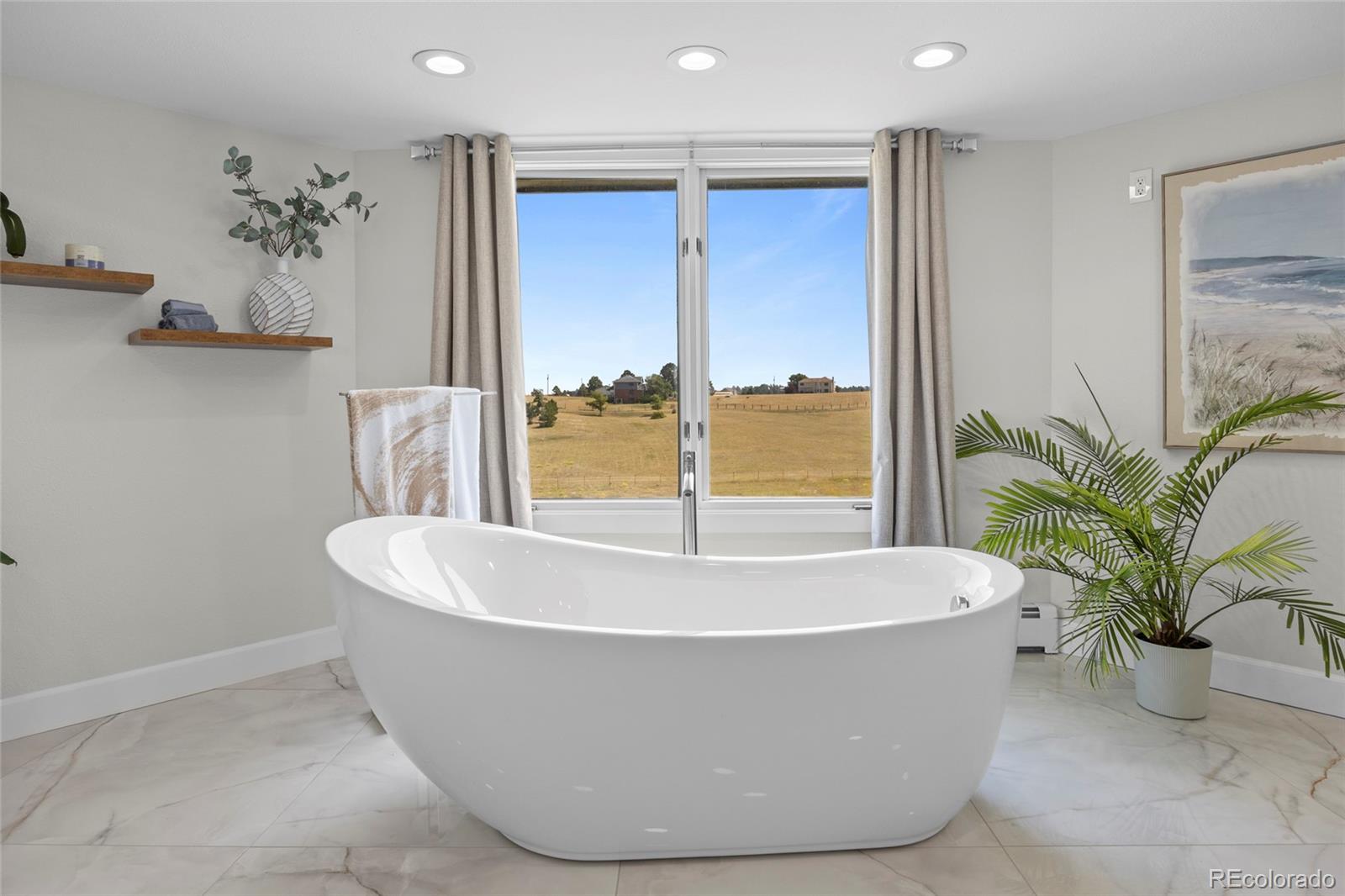 Luxury country living meets modern comfort! This impressive 4 bed, 4.5 bath estate spans over 6,000 sq ft and rests on 5+ beautifully landscaped acres. Every bedroom boasts a private ensuite, while the luxury primary suite is a true retreat with a remodeled spa-like bathroom, two walk-in closets, and a cozy sitting area. The gourmet kitchen features granite counters, a gas range, and double smart ovens, opening into living and dining spaces designed for both hosting and everyday ease. Storage is abundant throughout the home--including a perfect space for wine aging or canning enthusiasts to store homemade goods. After a workout, unwind in the basement shower room (with potential to convert to a steam room), or step onto the wrap-around porch to soak in sweeping Colorado views. Equestrian enthusiasts will appreciate the custom 1,172 sq.ft. barn with two oversized stalls (10.6x11 and 10.6x12.6) complete with rubber mats, a tack area, and a spacious upper level with endless possibilities. The paddock area is ideal for horses or could be transformed into a gardener's dream. Plus, Meadow Station offers 156 acres of private common property for non-motorized activities like horseback riding. Practical upgrades give this property added value and peace of mind: a private well provides fresh water with no monthly utility bills, a septic system offers self-sufficient living without city sewer costs, and an owned propane tank means long-term savings and complete control over your energy supply. With a brand-new roof (August 2024), fresh exterior paint, and countless luxury updates, this home delivers a serene country/equestrian lifestyle--all just minutes from Parker and Southlands conveniences. Words can't fully capture all this property has to offer--it's best experienced in person. Schedule your showing today and don't miss the 3D tour!