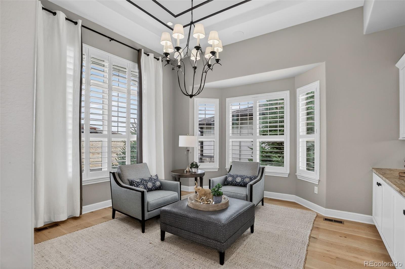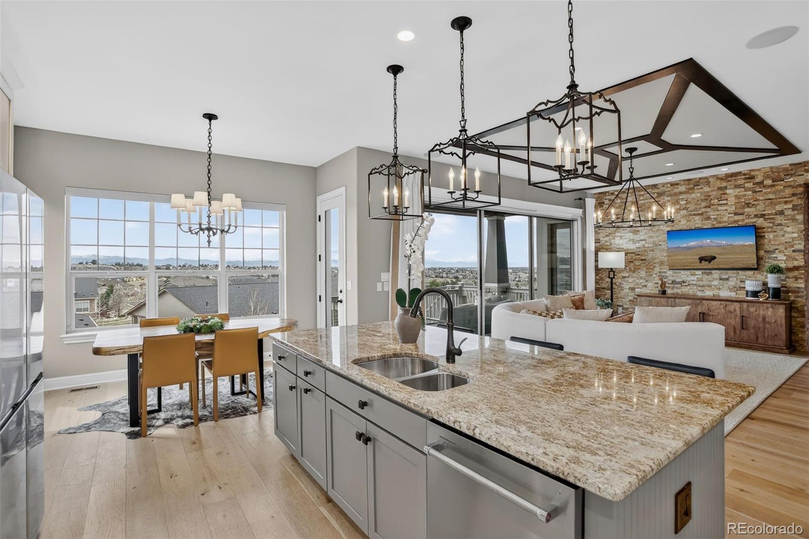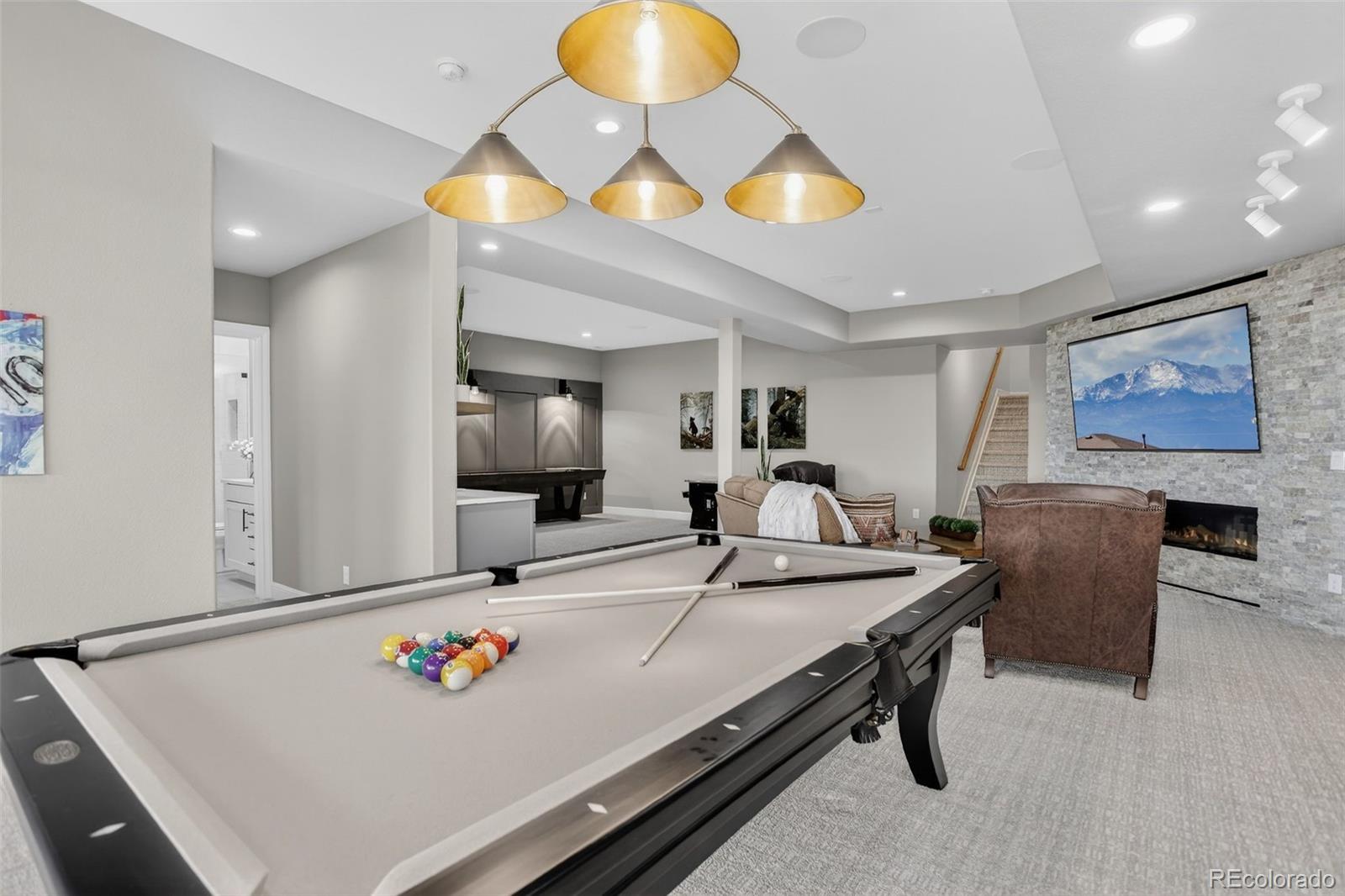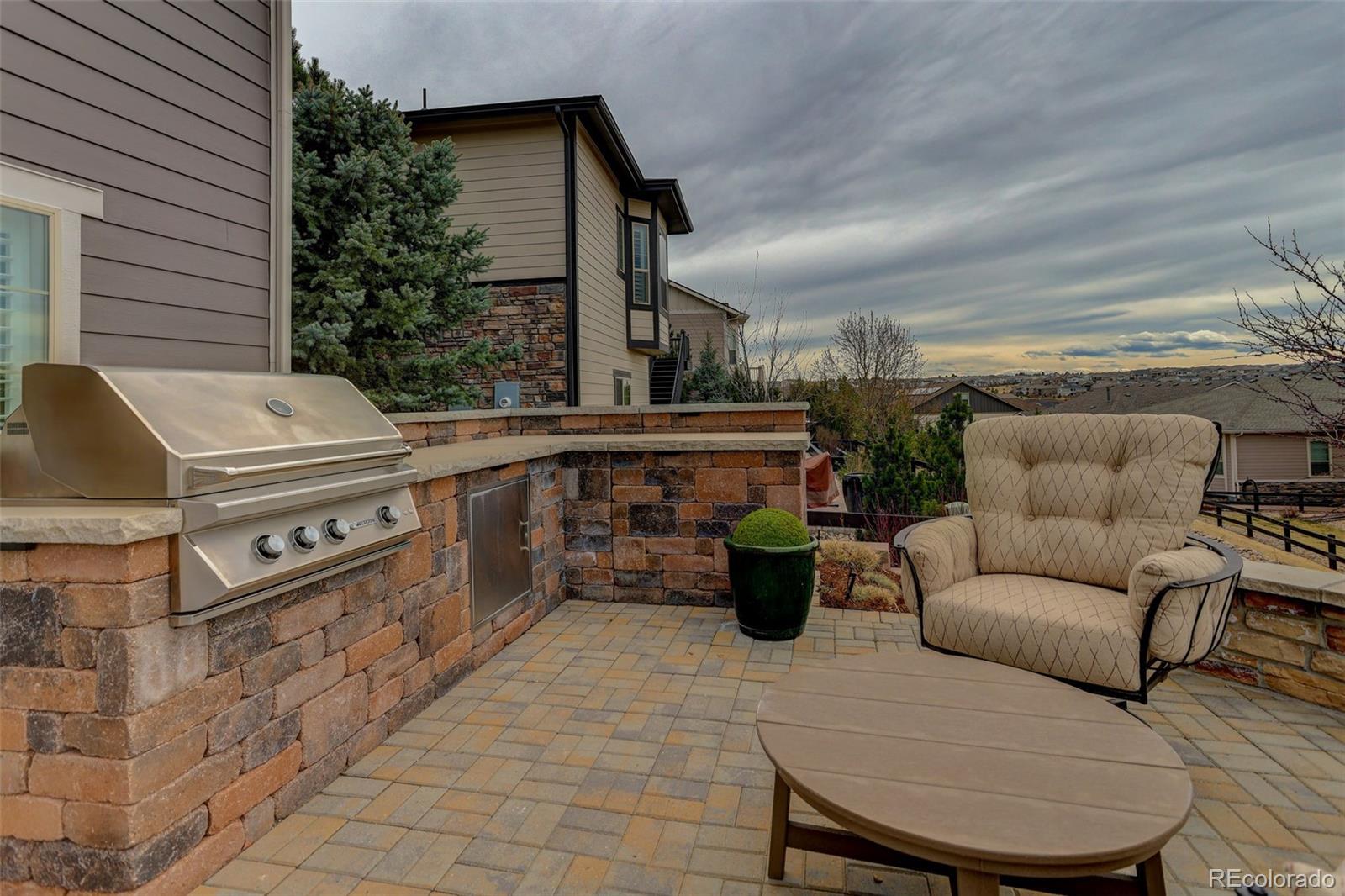 There are homes that simply check the boxes and then there are homes like this, where every detail invites you to live more beautifully. Set on a quiet cul-de-sac in the coveted 55+Hilltop at Inspiration, this former Toll Brothers model home offers a rare blend of sophistication, comfort and breathtaking natural beaut with sweeping 180-degree mountain views that steal the show from sunrise to sunset. From the moment you arrive, the professionally landscaped grounds, elegant exterior lighting & welcoming outdoor spaces create an unforgettable first impression. Inside, 4,367 sf of impeccably finished living space unfolds with soaring 10-foot ceilings, rich wood flooring & stunning floor-to-ceiling stacking glass doors that blur the line between indoors & out, placing Colorado's majestic scenery at the center of everyday life. The kitchen is as functional as it is refined, appointed with top of the line appliances, large quartz center island, dedicated pantry and custom lighting - ideal for intimate evenings at home or entertaining on a grander scale. Throughout the home, shutters & motorized shades add a polished touch while fully owned solar panels deliver remarkable efficiency with zero additional electric/gas costs. The basement was designed for memorable gatherings featuring a spacious TV room, a gaming space, a billiards area, a fully equipped wet bar, a bonus craft/hobby room and a private guest suite with adjacent bath. Terrace doors lead you to a covered back patio where year-round enjoyment awaits with built-in patio heaters, a new built in gas grill and a private putting green -- a magical place to relax under painted evening skies. Completing the experience is an epoxy-coated with EV charger and work bench... all just steps from the community clubhouse to enjoy all that Hilltop offers! This is luxury lock-and-leave living at its finest, wrapped in one of Inspiration's most extraordinary settings. Recent Updates include new roof, tankless water heater, & AC