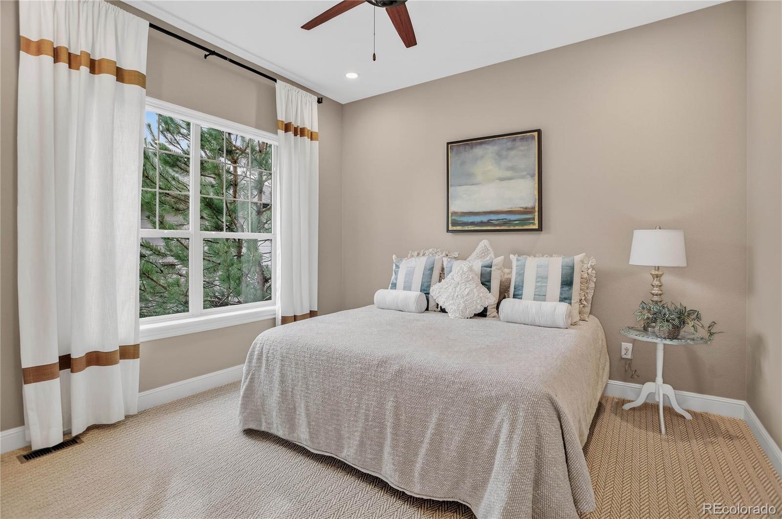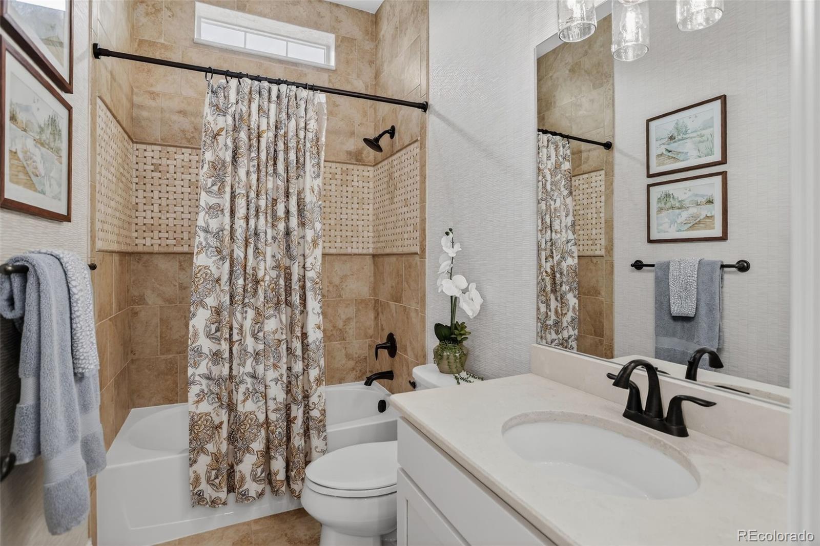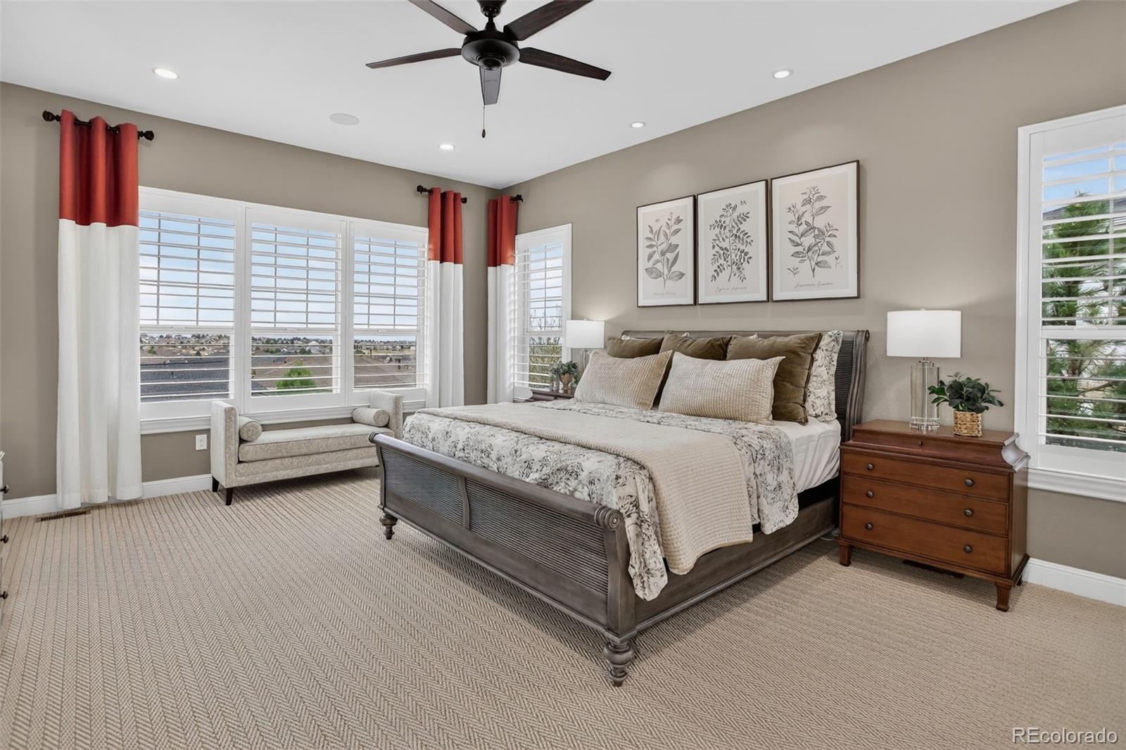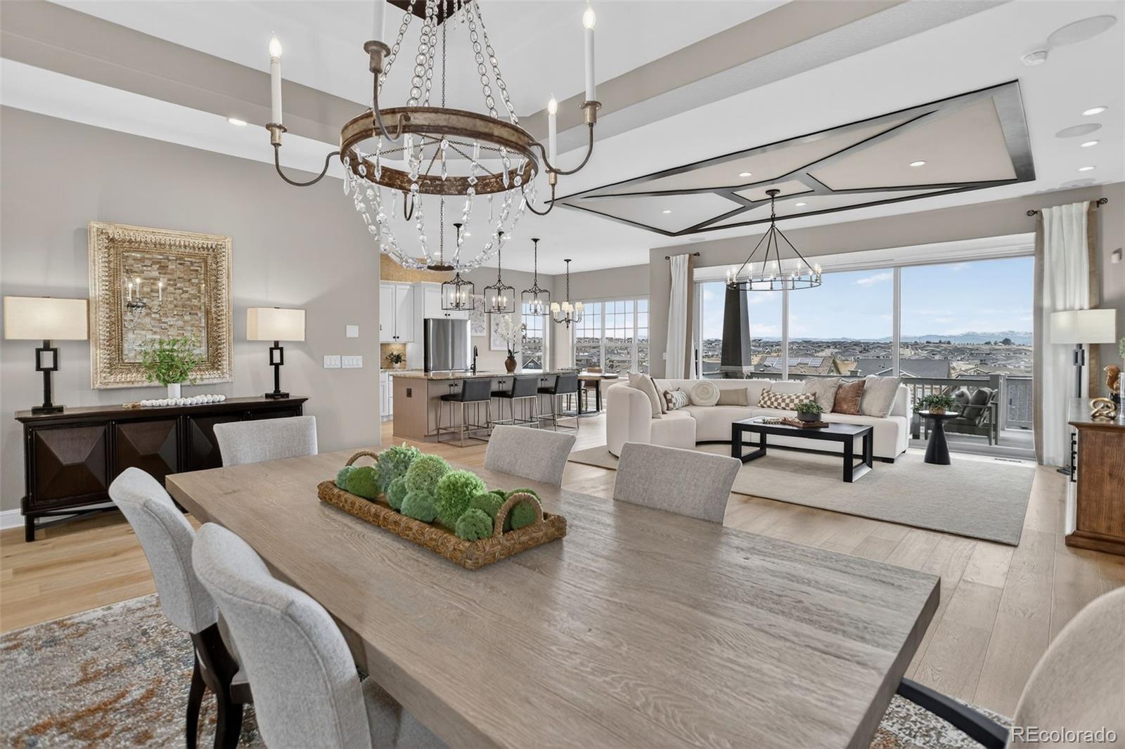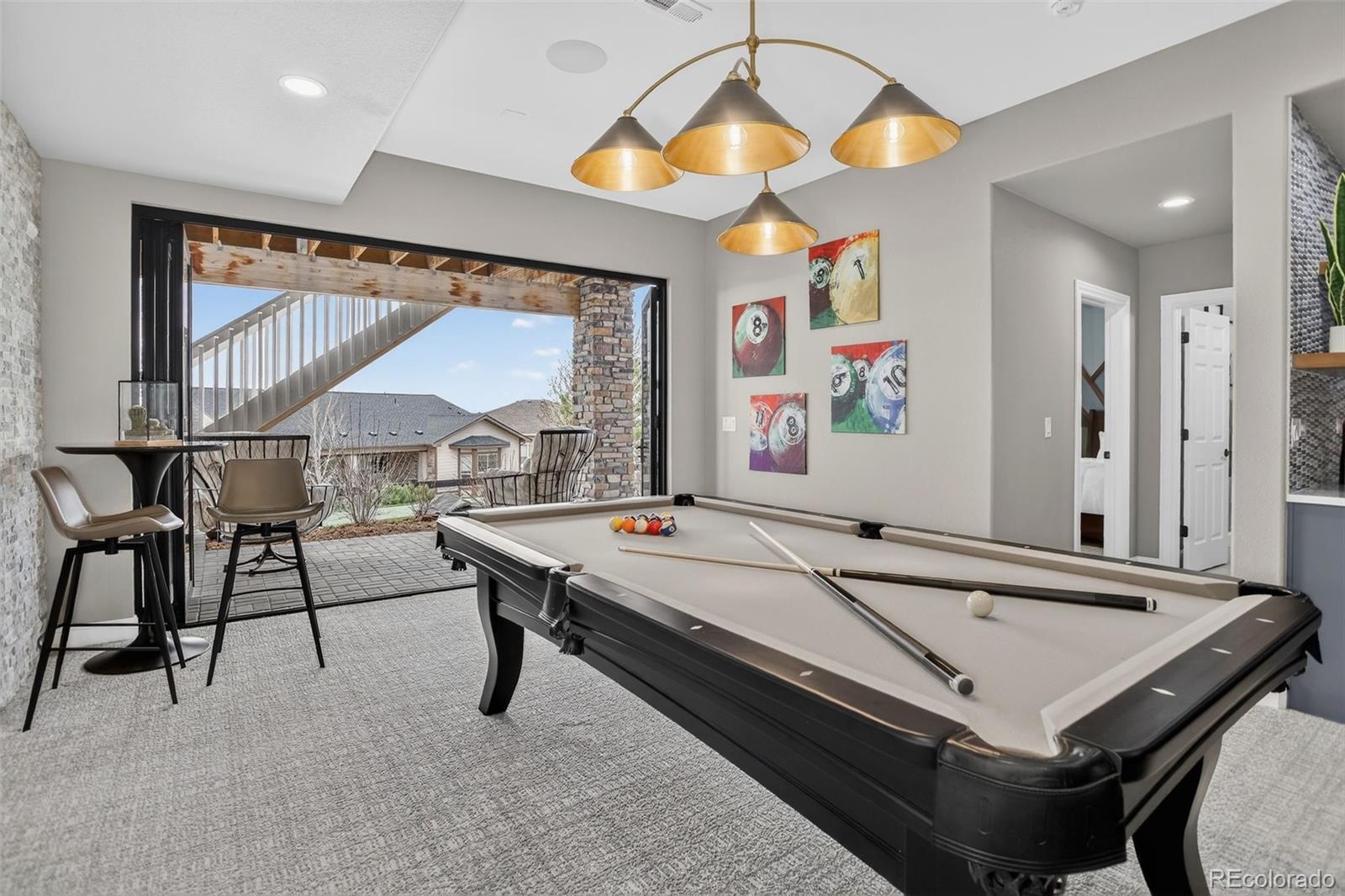 There are homes that simply check the boxes and then there are homes like this, where every detail invites you to live more beautifully. Set on a quiet cul-de-sac in the coveted 55+Hilltop at Inspiration, this former Toll Brothers model home offers a rare blend of sophistication, comfort and breathtaking natural beaut with sweeping 180-degree mountain views that steal the show from sunrise to sunset. From the moment you arrive, the professionally landscaped grounds, elegant exterior lighting & welcoming outdoor spaces create an unforgettable first impression. Inside, 4,367 sf of impeccably finished living space unfolds with soaring 10-foot ceilings, rich wood flooring & stunning floor-to-ceiling stacking glass doors that blur the line between indoors & out, placing Colorado's majestic scenery at the center of everyday life. The kitchen is as functional as it is refined, appointed with top of the line appliances, large quartz center island, dedicated pantry and custom lighting - ideal for intimate evenings at home or entertaining on a grander scale. Throughout the home, shutters & motorized shades add a polished touch while fully owned solar panels deliver remarkable efficiency with zero additional electric/gas costs. The basement was designed for memorable gatherings featuring a spacious TV room, a gaming space, a billiards area, a fully equipped wet bar, a bonus craft/hobby room and a private guest suite with adjacent bath. Terrace doors lead you to a covered back patio where year-round enjoyment awaits with built-in patio heaters, a new built in gas grill and a private putting green -- a magical place to relax under painted evening skies. Completing the experience is an epoxy-coated with EV charger and work bench... all just steps from the community clubhouse to enjoy all that Hilltop offers! This is luxury lock-and-leave living at its finest, wrapped in one of Inspiration's most extraordinary settings. Recent Updates include new roof, tankless water heater, & AC