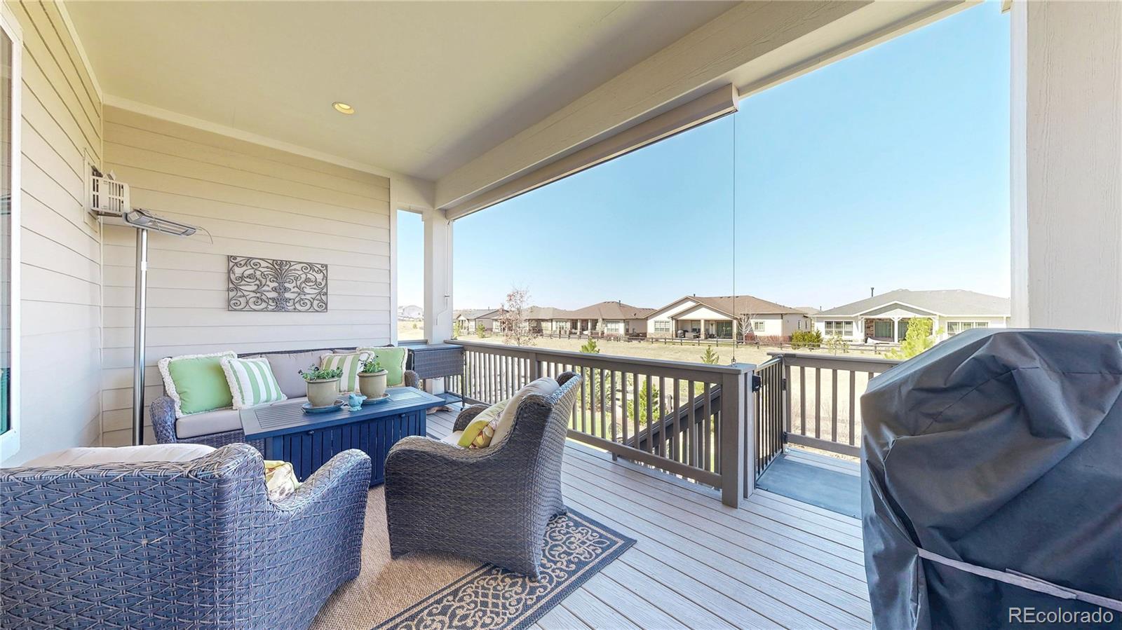Welcome to 8605 South Zante Court, an impressive residence in the popular Inspiration neighborhood! You will fall in love with this elegant 4-bedroom, 3-bathroom home which combines smart design with luxurious comfort. Nestled on a quarter acre lot, this property backs to open space offering gorgeous Colorado sunsets and beautiful mountain views. Step inside to discover soaring ceilings and elevated finishes throughout including custom decorative moldings that add a touch of sophistication. Culinary enthusiasts will appreciate the thoughtful kitchen design whether cooking everyday meals or hosting elaborate dinners. This gourmet eat in kitchen delivers with high end stainless steel appliances including a 5 burner gas stove and double ovens, a massive Italian granite island and a dedicated pantry. The adjacent living area offers plenty of natural light, 2 story ceilings, a custom stone fireplace, and plantation shutters making this more of a GREAT room than a typical living space. The main level also hosts the spacious primary retreat with a spa like en-suite bath. The bath includes a European walk in shower, dual vanities and a custom California closet. The vast upstairs includes 3 oversized rooms - all with custom closets, 2 baths and a functional loft space perfect for relaxing with a book or watching your favorite team on a big screen. Out back you will enjoy a large covered patio ideal for al fresco dining, a larger second paver patio and a large turf yard with abundant landscaping for added privacy and enjoyment. Additional features include new Class 3 Shingle roof with 10 yr warranty, new designer lighting throughout, new carpet with upgraded pad, updated counters, sinks and hardware; oversized 3 car garage, Jellyfish Lighting System, and a full unfinished basement allowing for plenty of storage and future equity. Embrace the epitome of Colorado living in this magnificent home where elegance meets practicality.